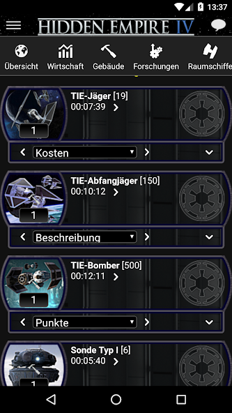ドイツのオンラインゲームHidden Empire Galaxy Adventuresのためのアプリ